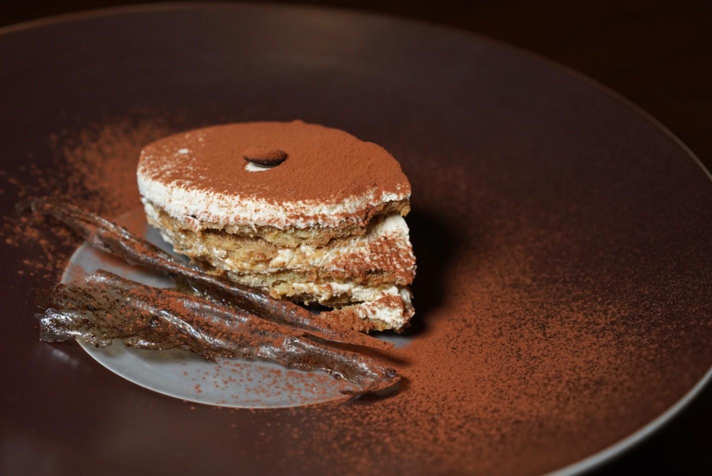 The tiramisu embodies the family style atmosphere of the entire restaurant: It’s archetypal Italian, with a moist lady finger 'cake' soaked in Kahlua and Amaretto, lush whipped mascarpone cream cut by acidic coffee syrup, a sprinkle of cocoa powder, and a topper in the form of glass-like coffee bean candy.