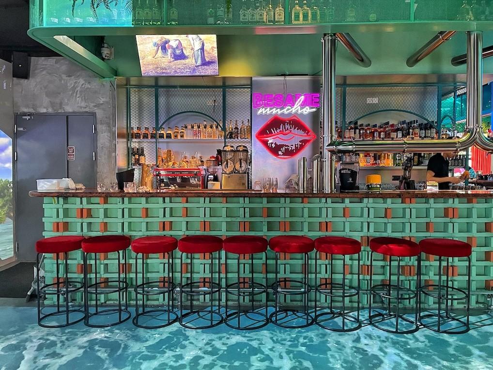 The atmosphere screams beach vacay – something all of us need right about now – with custom projectors creating visuals of moving waves that lead up to the ‘swim-up’ Besame Mucho-branded bar. Lounge ‘beachside’ under a straw umbrella, sipping on any of the 20 holiday-inspired cocktails created by Head Bartender Artëm Zuev, and as evening turns into night, prepare to bust out your best dance moves as the restaurant is transformed into a full on discoteca.