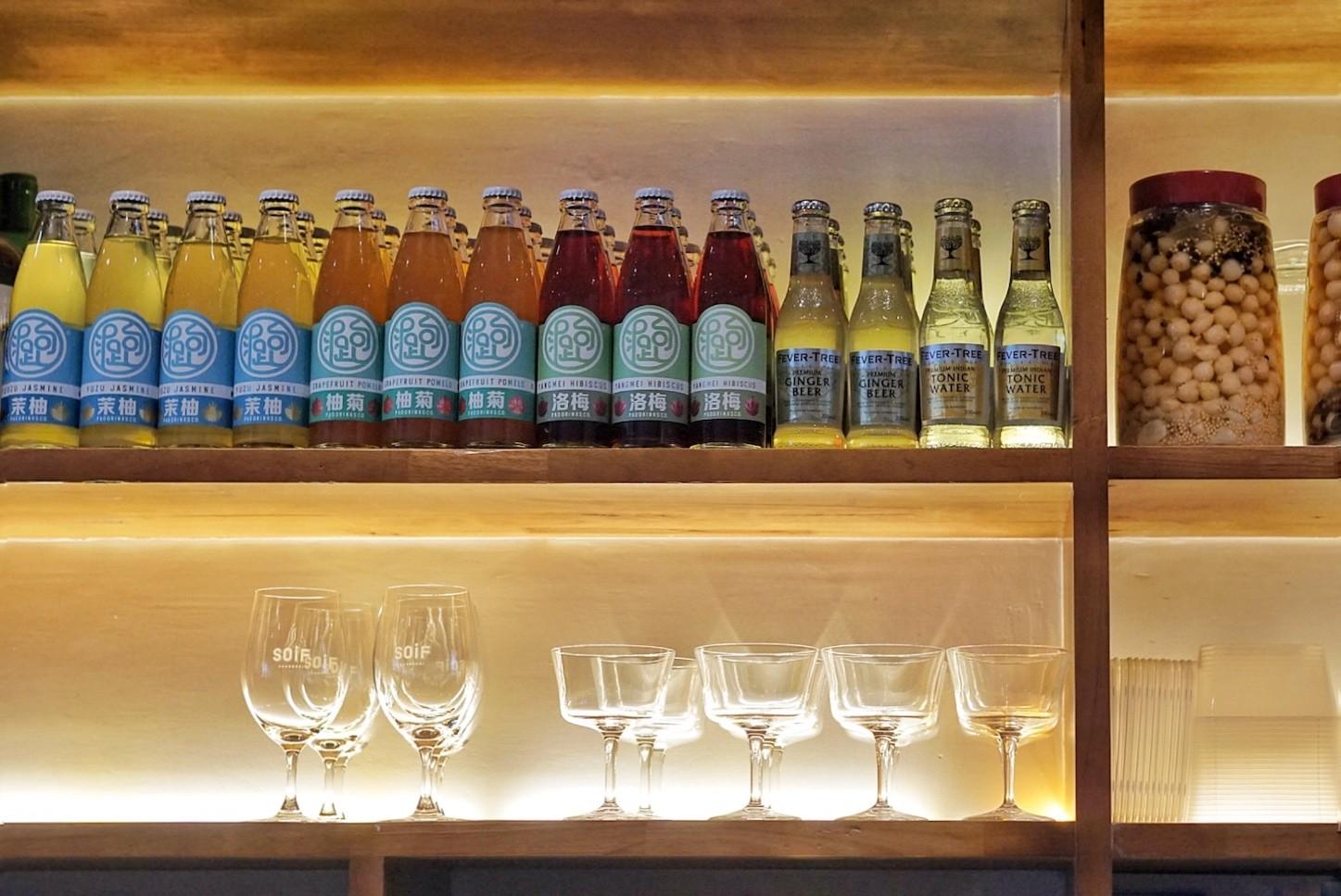 Like everything else, the kombucha is also homemade, with fermenting flavors like grapefruit and strawberry in the side fridge rotating daily on tap. Taihu lager and Bravo Session IPA are also on draft, and bottles of Cantillon Gueuze go for RMB350 for 750ml.