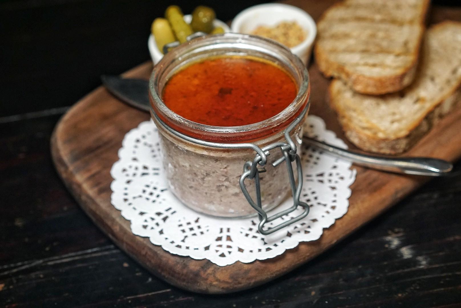 A generously large jar is filled to the top with Duck Rilletes (RMB95), a sharing portion that could easily feed a small family, accompanied as it is by toast, cornichons and whole grain mustard.
