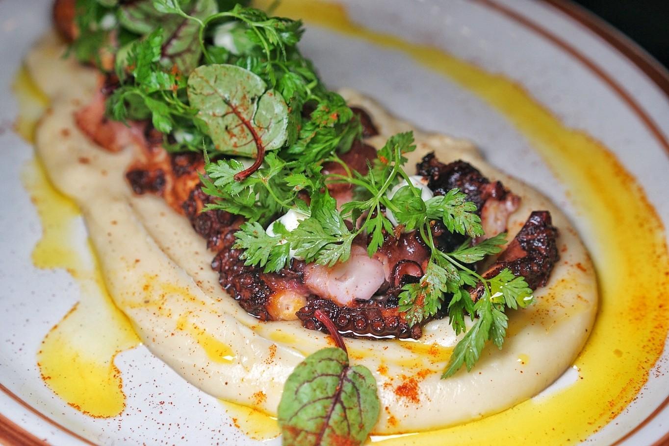 Celeriac purée topped with Grilled Octopus Leg (RMB195) is crowned with an herb salad and dots of herbaceous aioli coupled with a lashing of lemon zest oil. Together, these citrusy, fresh flavors form an anchor that allow the umami-rich seafood to take the lead.