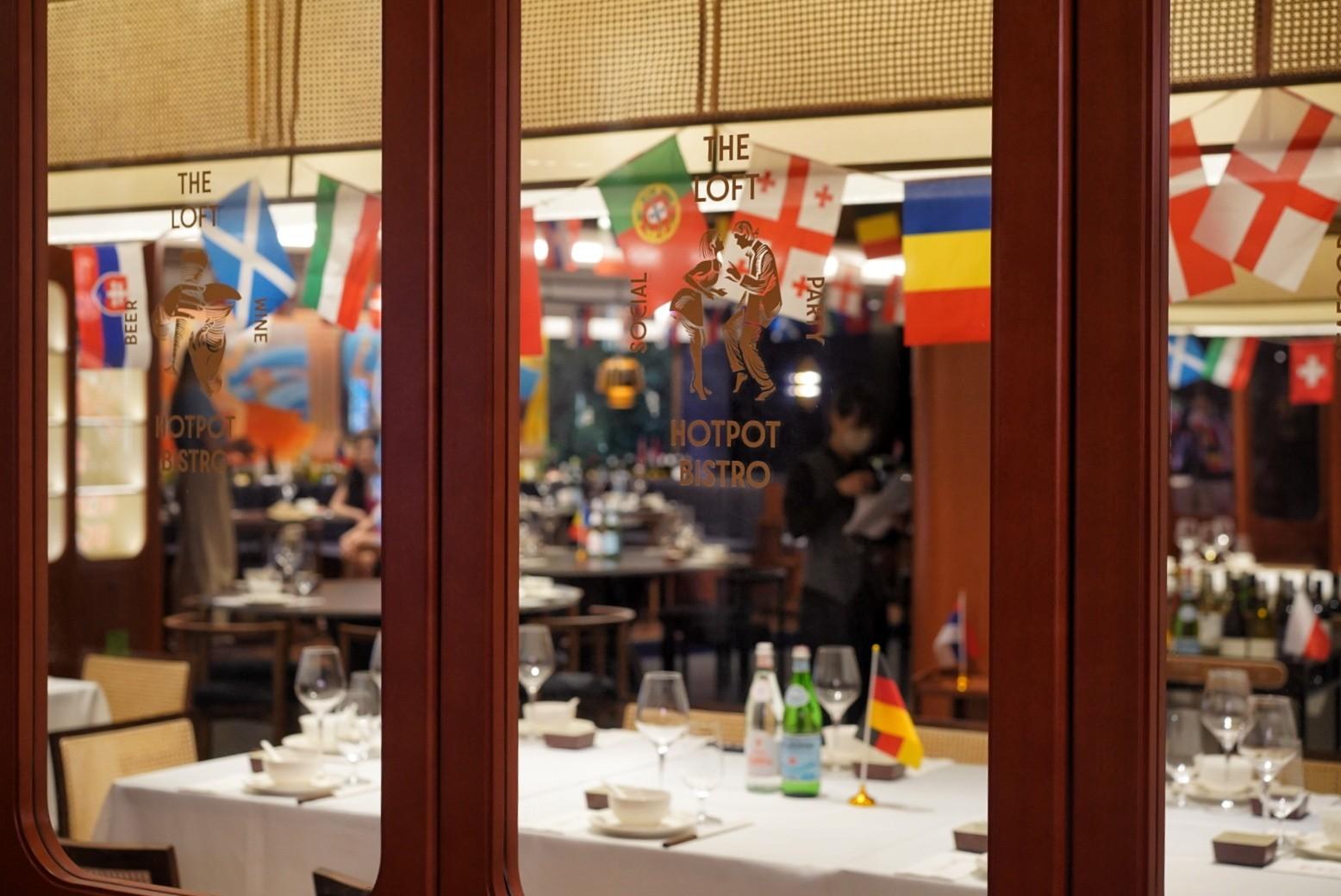 Situated on the second floor of INS, within the confines of the former French Concession’s century old Fuxing Park, Loft Hotpot Bistro’s décor reflects said Gallic influence with French music, Mediterranean bistro-style window-paned doors, and European-inspired hand-painted murals covering the walls.