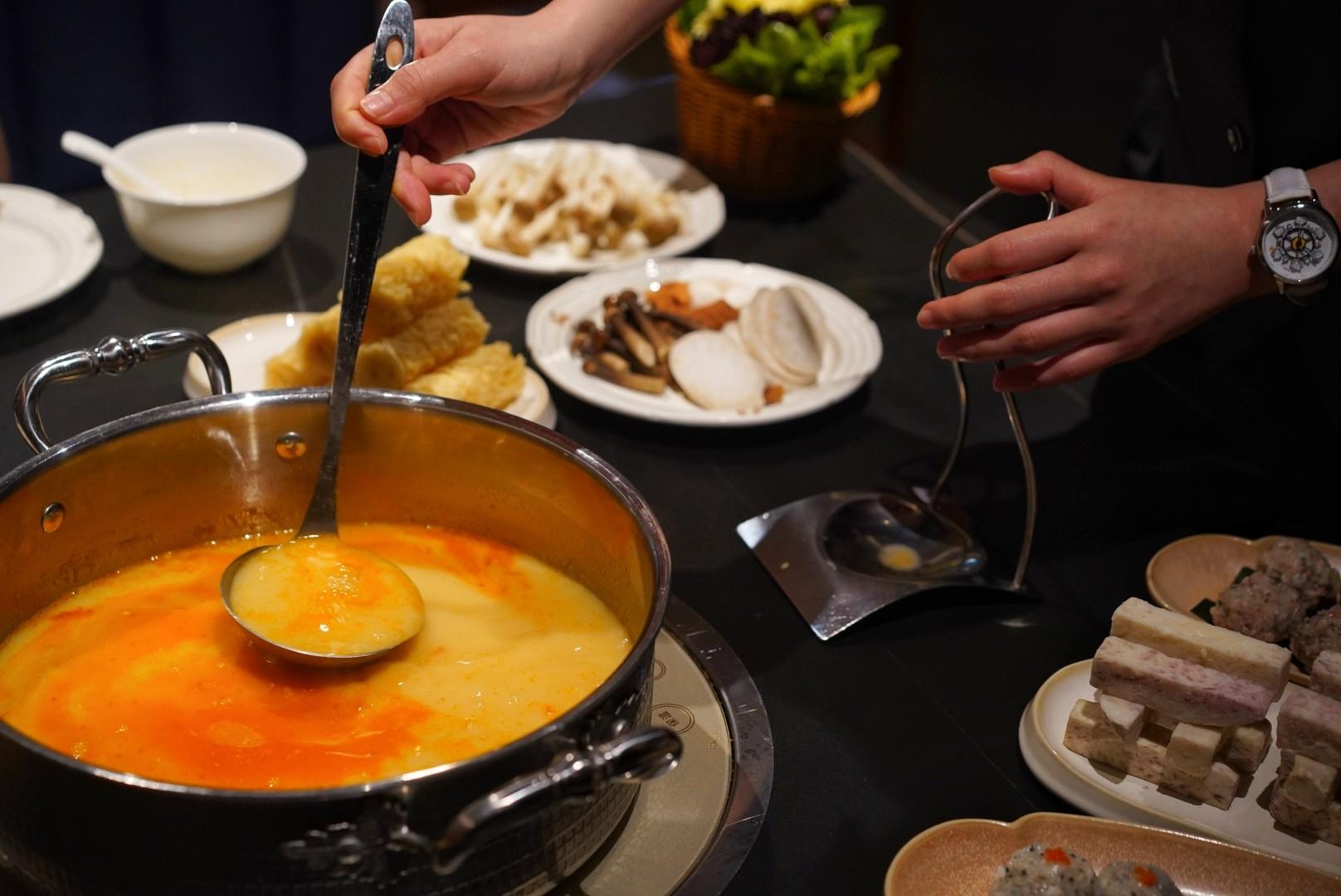 Take the 8-Hour Shrimp Head Oil Boston Lobster Broth (RMB498), for example. This clean seafood broth arrives tableside with an entire Boston lobster swimming inside it, the crustacean’s inherent sweetness coming through in each spoonful.