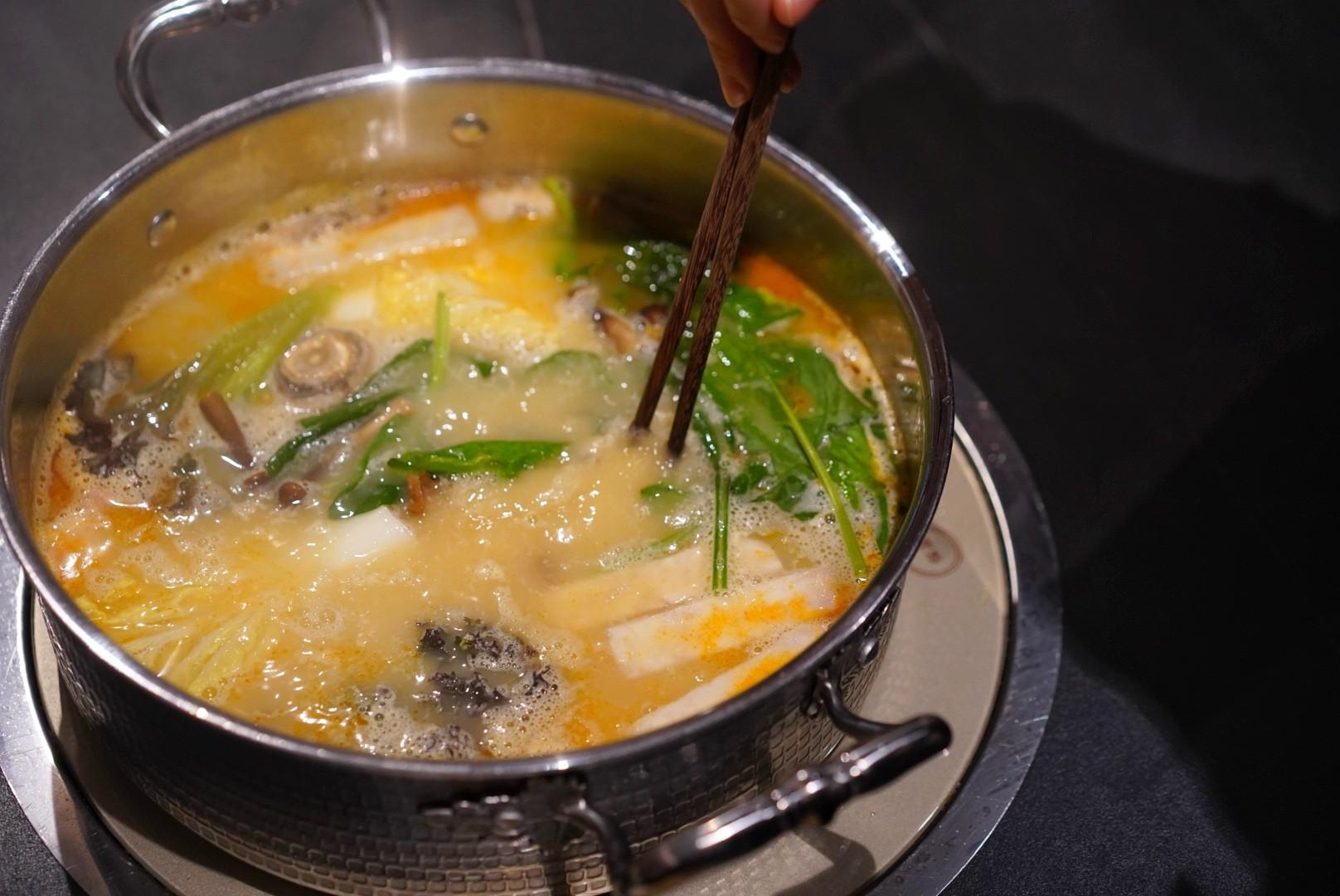 Think lighter hotpot with an equally fresh supply of ingredients, so guests can get their fill without the stomach heaviness.