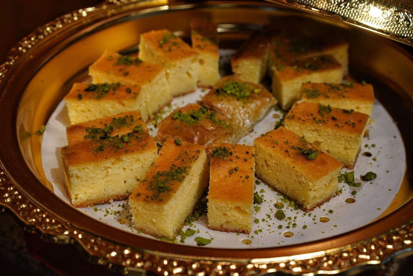 Juicy lamb kofta and kebabs, tavuk sis, biriyani, fat-dripping chicken shawarma on a roasting pit, plus plenty of dips and cold dishes like nutty mouhammara spread, grilled eggplant, grape leaf dolma, authentic Middle Eastern hummus, mashed lentils, Greek salad, pita, Turkish bread, and assorted Turkish desserts like baklava.