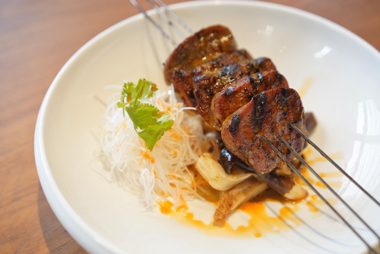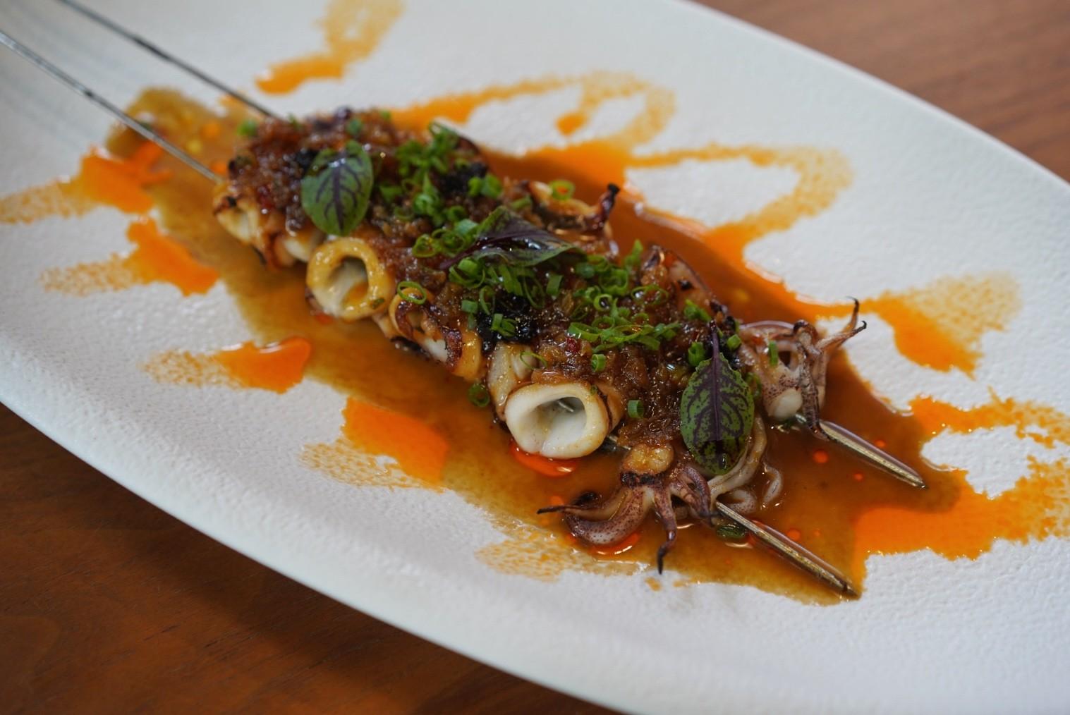 The Calamari Mung Bean (RMB168) sees bouncy pieces of mirin-, miso- and honey-glazed squid rings roasted over charcoal with Chinese dan dan chili spice.