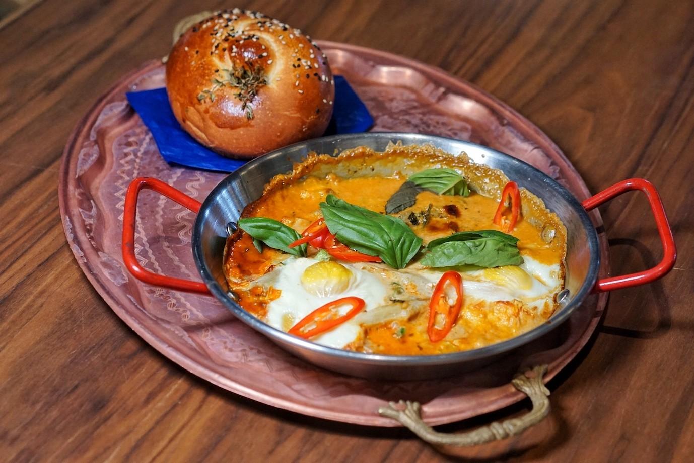 The Shakshucurry is a mashup of Shabtay’s roots and passion – a coconut curry spin on a traditionally tomato based baked egg dish, served alongside another textbook challah bread knot.