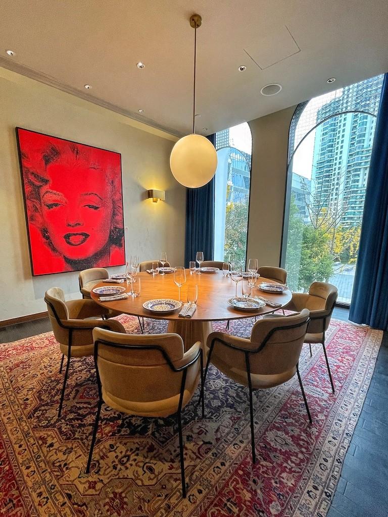 The second floor plays host to an open dessert bar with an outdoor terrace and a more Western chic feeling dark wood private dining room. The music is a mix of classics and hip song covers you can't help but Shazam and add to your own playlist.