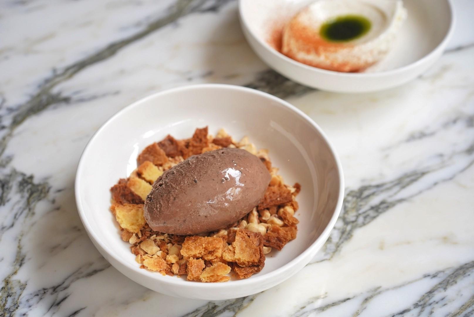 A plump quenelle of dark chocolate and Black Truffle Ice Cream (RMB78) rests atop crushed sablé cookies and toasted nuts crumble, a must-order for chocolate fiends that enjoy a savory punch.