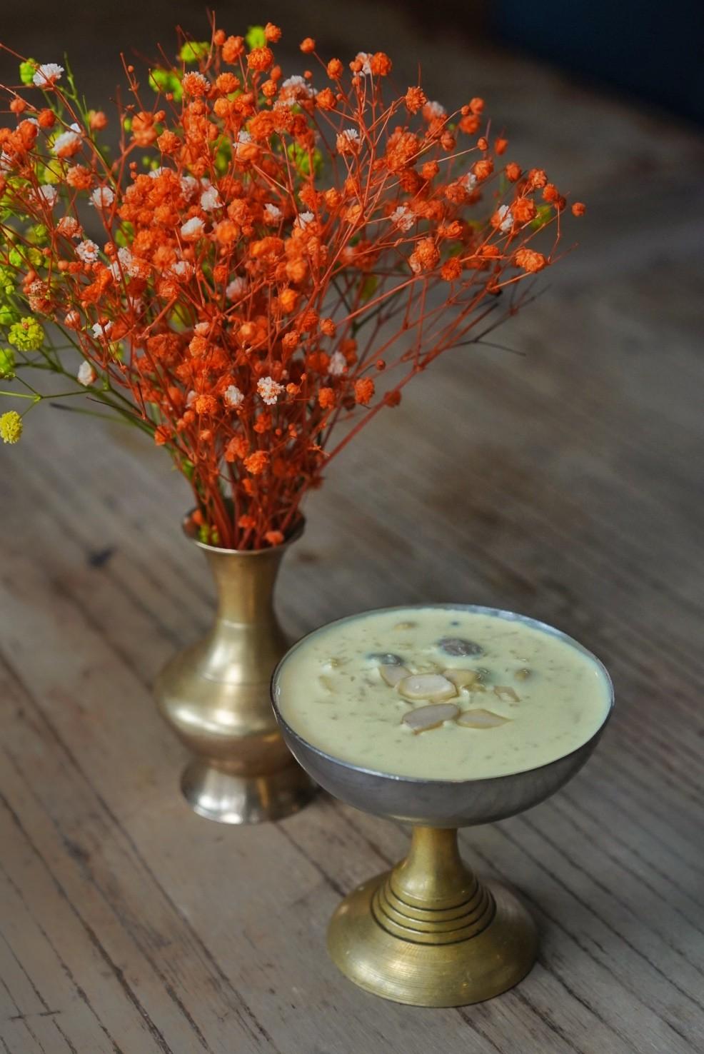Dessert spans sweets like Ice Cream (RMB43), Apple or Banana Fritters (RMB49), traditional Nepali Sikarni Yogurt (RMB38), and Kesari Kheer Rice Pudding (RMB38) – a saffron-scented milky treat, studded with dried fruits and nuts and served hot or cold.