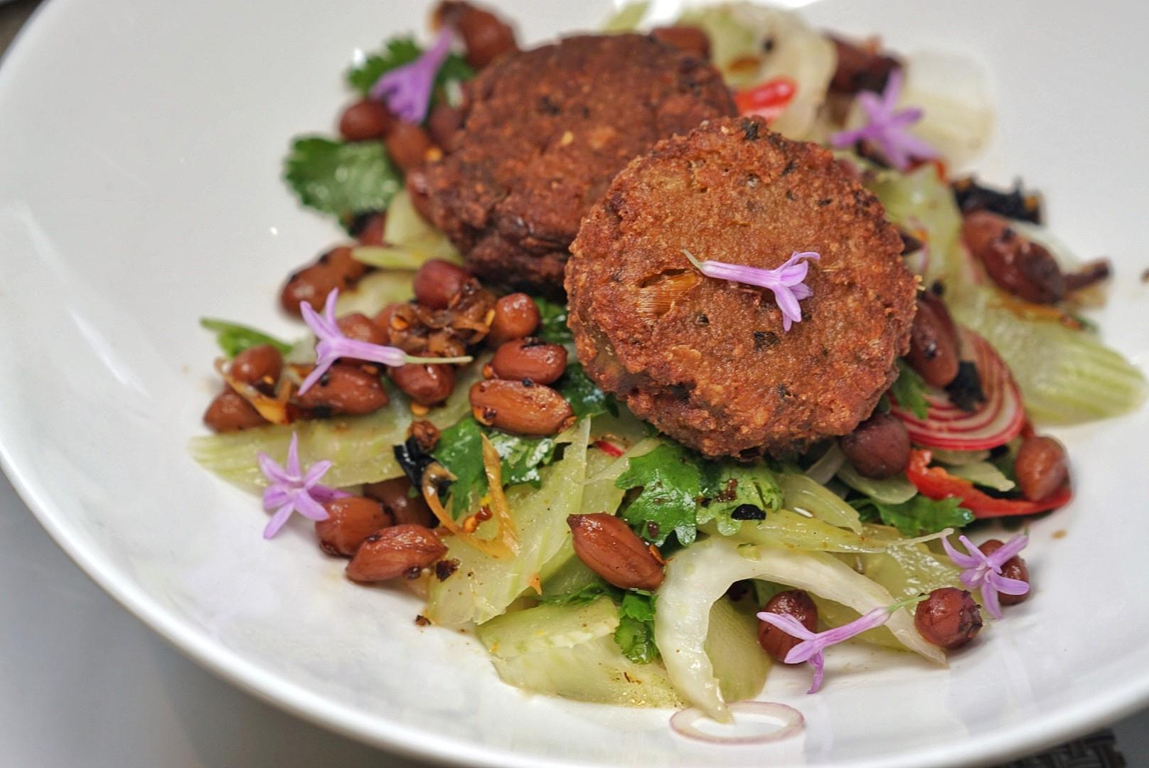 Expect to find delicious starters like honey Roasted Pumpkin with Black Hummus (RMB59) – topped with pomegranate seeds, pine nuts and falafel-like vegan meatballs made from a mix of Yunnan water chestnuts and pine nuts – and Thai Celery Salad with Vegan Crab Cakes (RMB69) – a refreshing blend of crisp celery slices, spicy red chilis and a citrus vinaigrette, sprinkled with pickled peanuts.