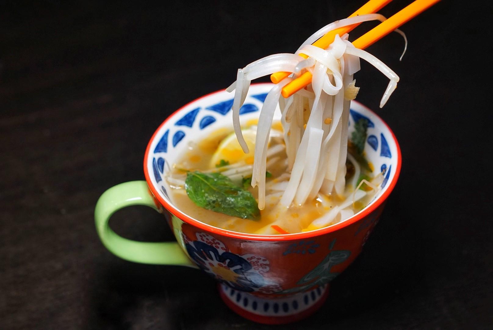 For a mini vacation to southeast Asia, the Coconut Curry Noodle Soup (RMB69) sees a blend of Yunnan-sourced wild ferns, shaved banana flower and fresh herbs encircling chewy rice noodles and brocollini in a spiced coconut broth.