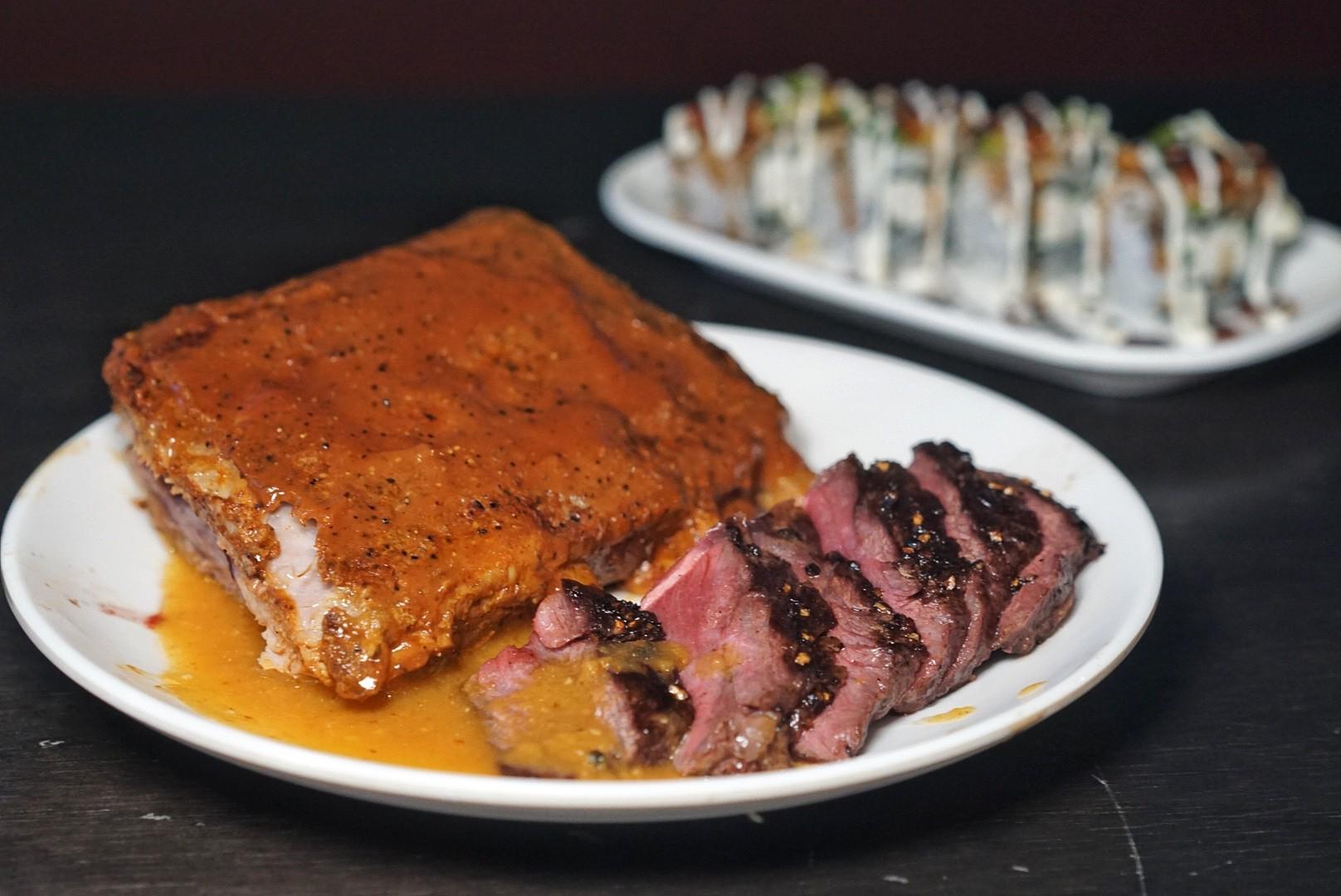 An extra RMB50 includes a BBQ platter plus four pieces of sushi (always rotating, like eel and crab salad or shrimp tempura). There are always two kinds of meats on the BBQ platter, pulling from Cages famous Thursday BBQ night menu, with selections like BBQ ribs, Wagyu hanged tenderloin, corned beef and smoked brisket.