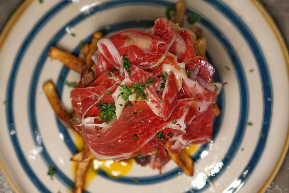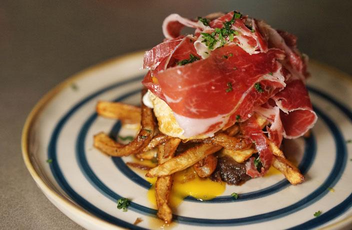 Take a good dish and make it better by ordering the Huevos Estrellados (RMB58) with Iberico Ham (RMB20). The result is a layered plate of gluttony starting with sweet, earthy, nutty Jamon Iberico with fat that melts like butter piled onto crispy, thin French fries and a perfectly fried egg with crisp edges and runny yolk. At the very bottom, sweet onion jam serves to balance the saltiness of the other components.