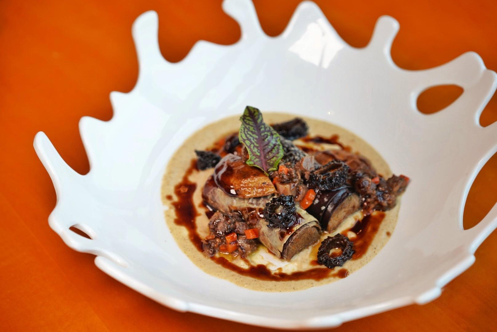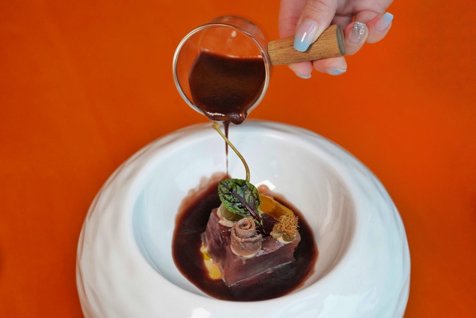 Stuffed with slow-braised Wagyu veal, il Cannello's (RMB178) duet of cannelloni pasta shells are made from just egg yolk and 92% cocoa powder, resulting in silky smooth and subtly rich noodles, encircled by a napolanta sauce and crowned with seared foie gras.