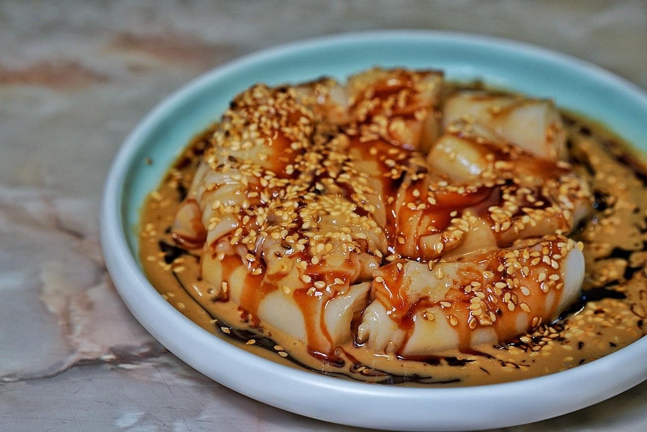 Onto the nostalgia-inducing food, because it’s not like we came for the atmosphere. The diner’s signature dish is cheung fun, or Rice Rolls (RMB14), and based on the sauce alone, we understand why. A holy trinity sauce trifecta of drippy peanut butter, sesame paste and a sweet bean sauce similar to that sticky tianmianjiang slathered on your morning jianbing are generously drizzled across rolled steamed rice noodles. Noodles aside, we found ourselves dipping everything short of a piece of cardboard in that sauce.