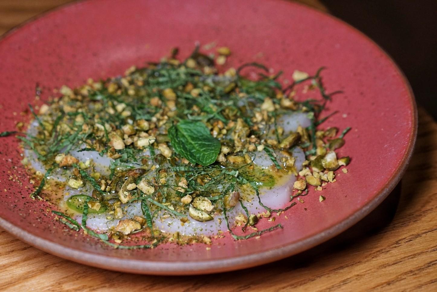 The Scallops Carpaccio (RMB88) sees chiffonade mint interlaced with crunchy pistachios and green chilies adorning delicately sliced scallops. The acidic hit from the sprinkle of lime juice coupled with the earthy nuts balance out the heavily aromatic fresh mint, resulting in a thoughtful bite.