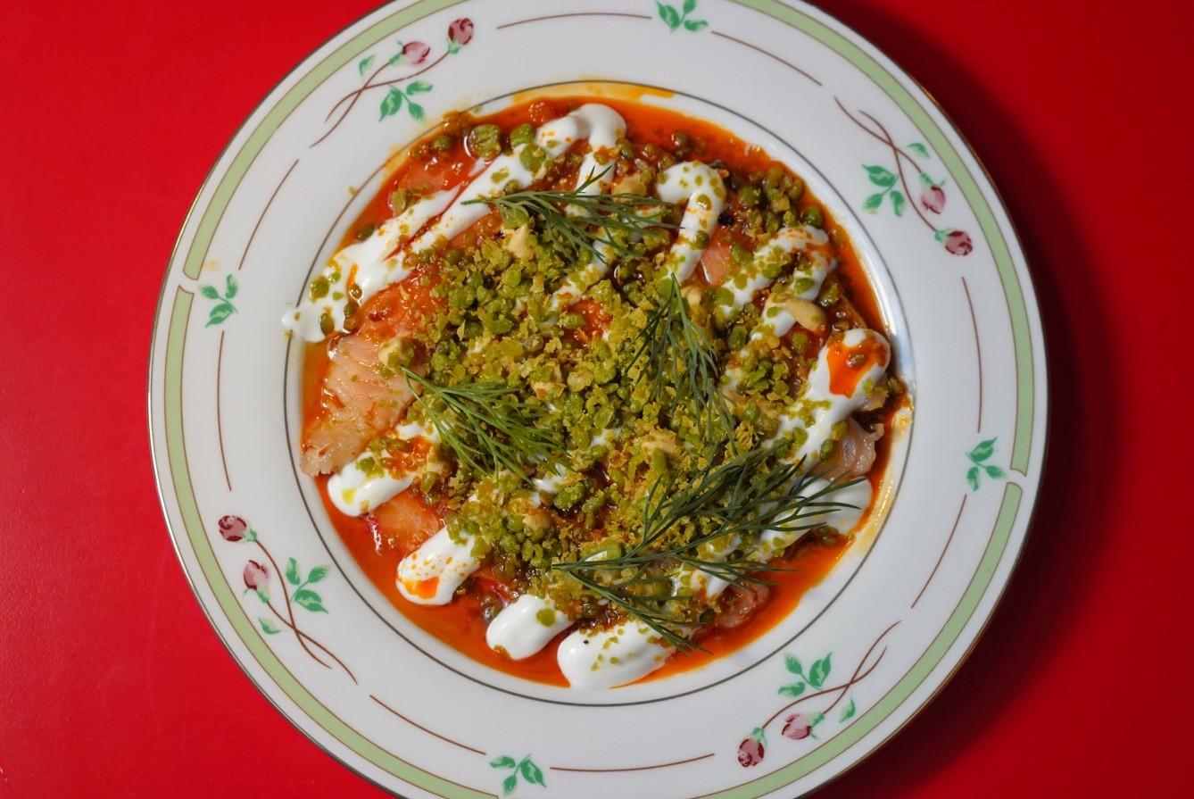 While it’s no easy feat to choose a favorite from your 'children,' Moo’s go-to bite on his newly launched menu is the Cured Salmon & Coconut (RMB48) – a layering of house-cured salmon dribbled in a lime-laced coconut milk, ginger scallion mustard, crushed wasabi peas, and fresh dill fronds.