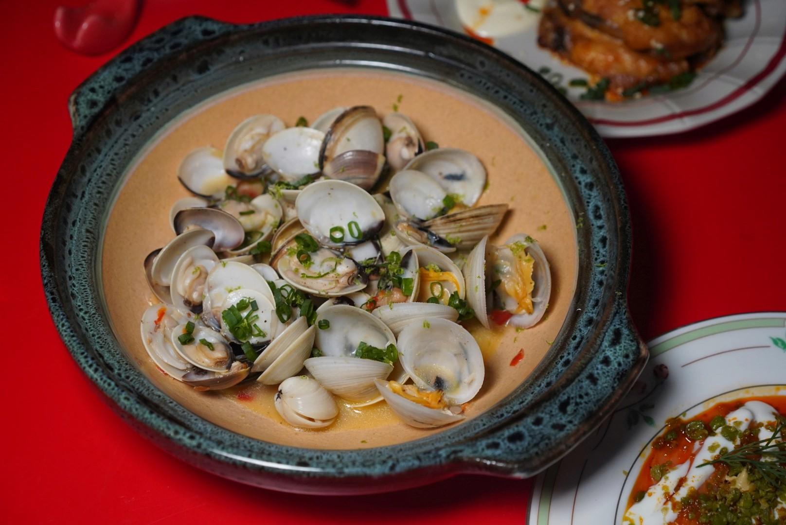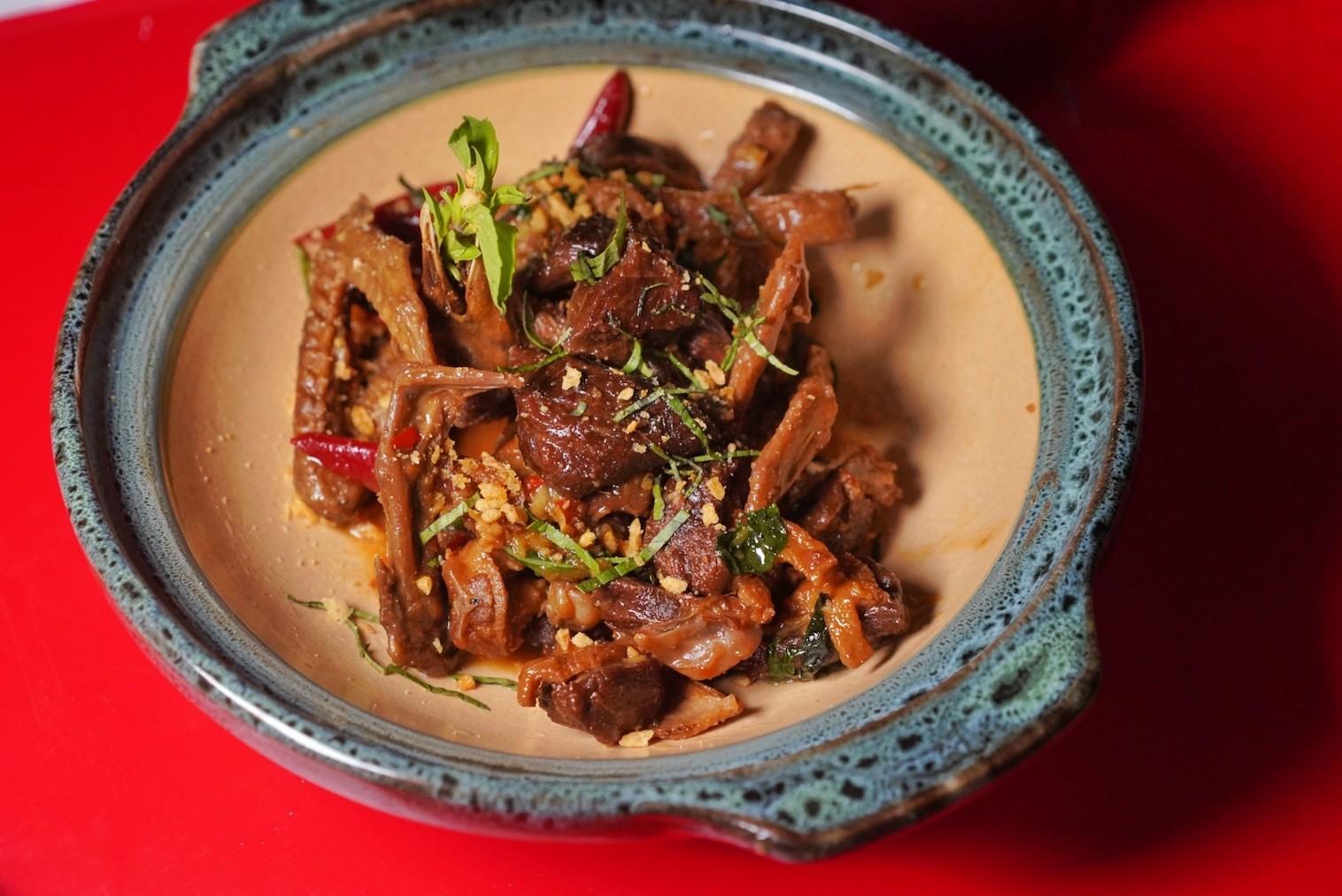 First brined and deep-fried, then slowly braised in (real!) Taiwanese rice wine and dark soy, the two pigeons per order are finally stir-fried in sesame oil with aromatics and finished with chili, garlic, and Thai basil in a clay pot.