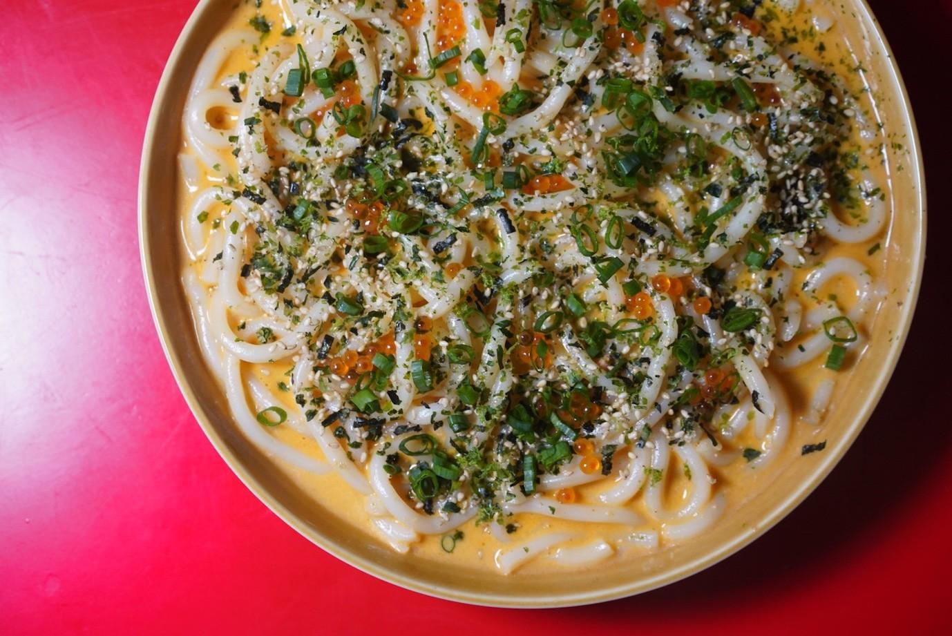 Mentaiko Udon (RMB98) – Ikura, seafood cream broth, furikake