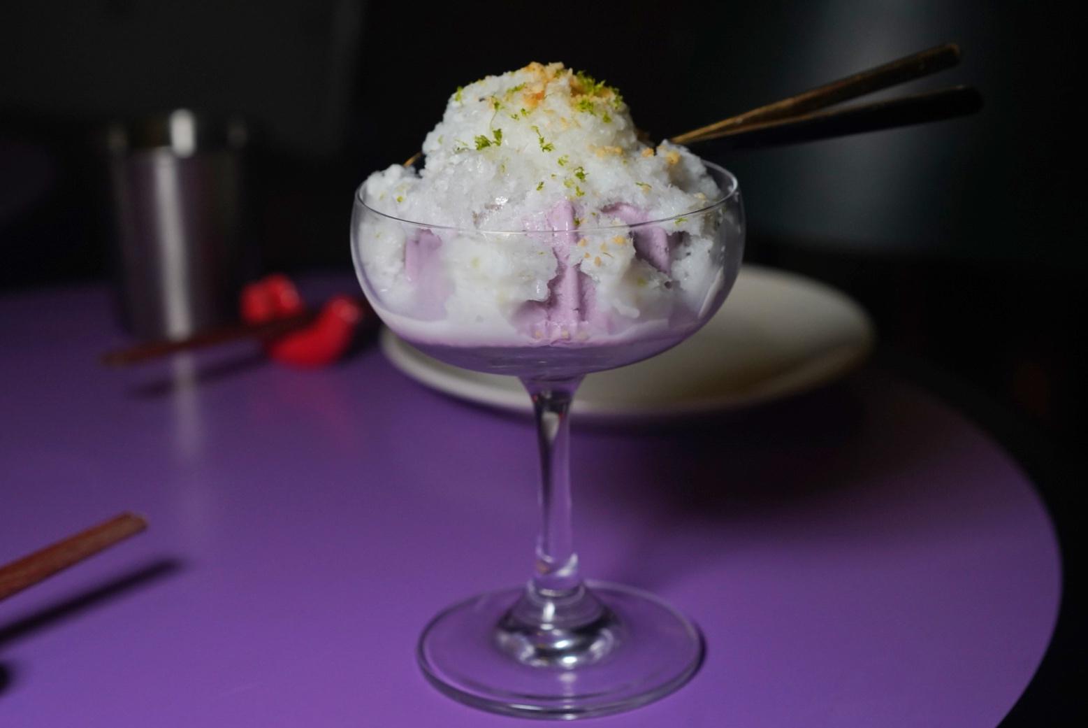 Purple yam-infused cream acts as the base for the Ube Panna Cotta (RMB48), dusted in a bright coconut lime granita, a demurely sweet ending that paves the way for more cocktails.