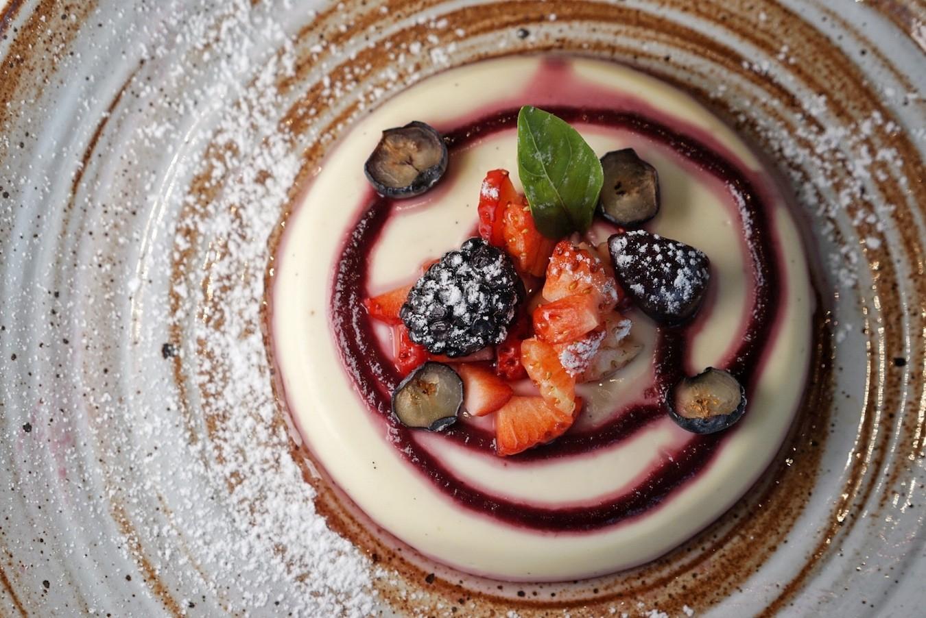 A subtly sweet dessert option involves the Vanilla Panna Cotta (RMB78), delicately trembly, topped with a swirl of berry compote and fresh seasonal berries.