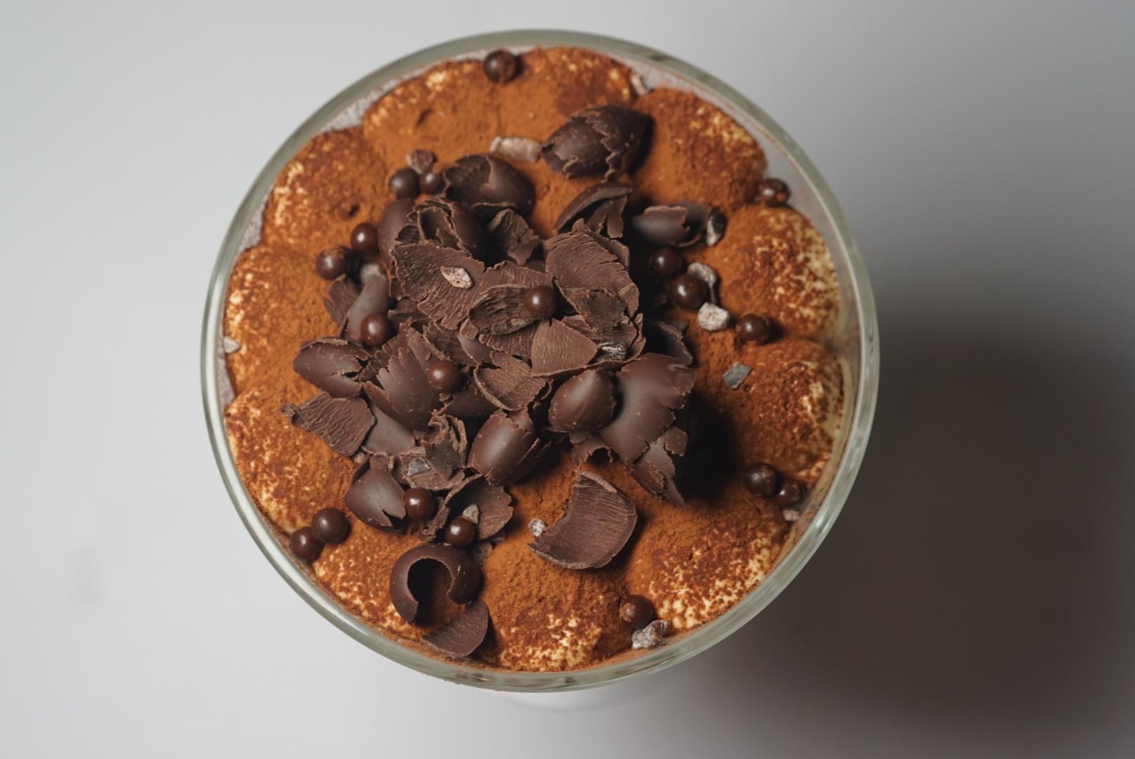 Soaked in Patron Café, the agave sweet booziness is balanced by the luscious layers of whipped zabaglione – or heated egg yolk and sugar cream – Italian biscuits and single origin shaved chocolate on top.