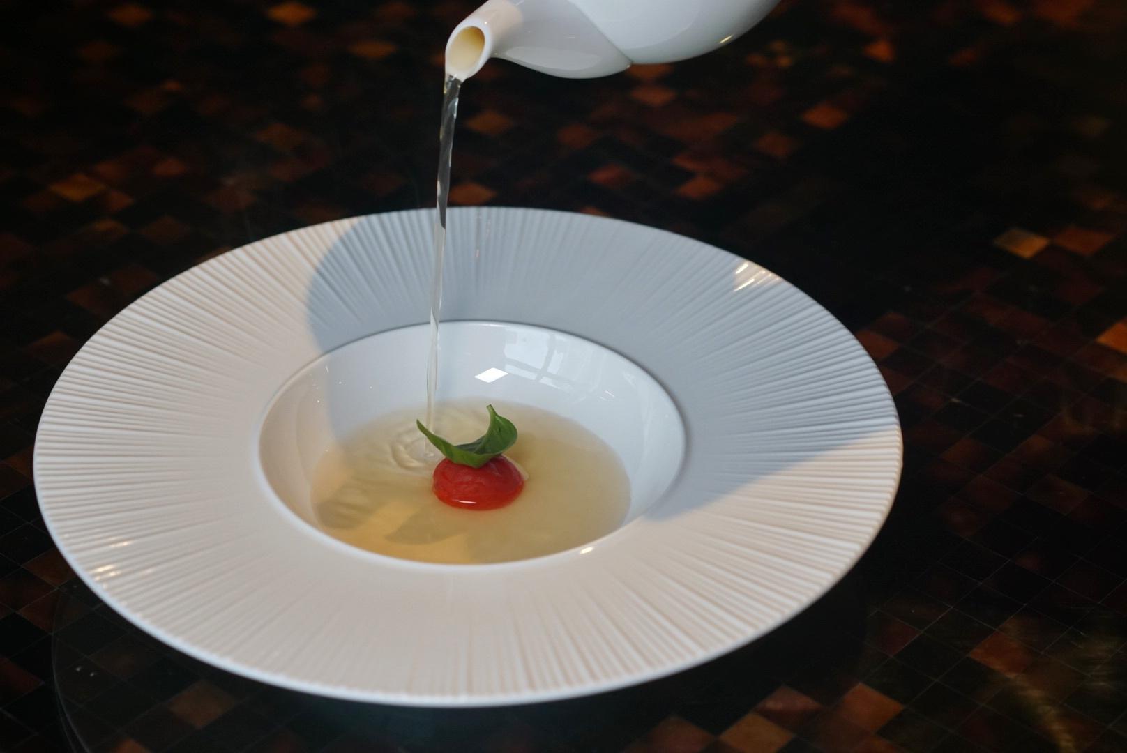 As an alternative to the cream-heavy tomato soups of many a New York-style steakhouse, the Tomato Soup (RMB118) at FLINT couldn’t be more opposite. Delicate in appearance and viscosity, the soup is made from strained, roasted cherry tomatoes combined simply with garlic and herbs. The result is a clean yet full-flavor broth of concentrated tart tomato – a shining example of how the dish’s combined ingredients surpass their humble origin.