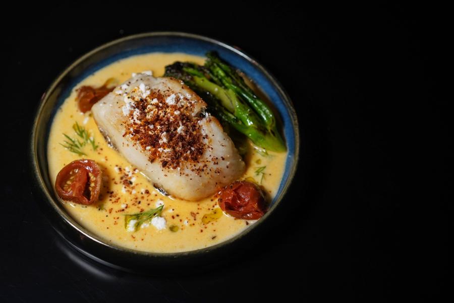 Off the Hook Baked Halibut (RMB188) – Baked halibut, spicy shrimp beurre blanc, feta