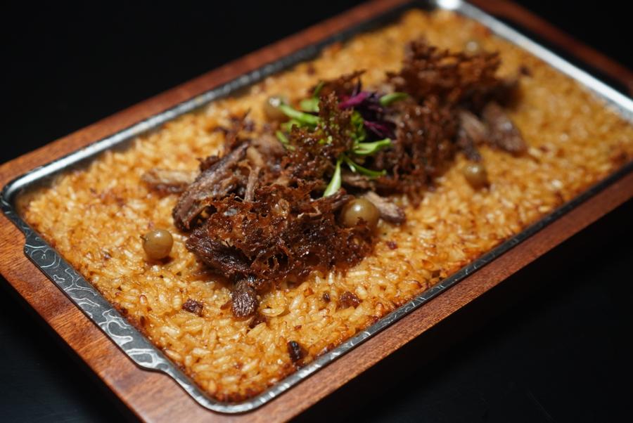 As for mains, expect to find elevated Cantonese roast goose – in shredded meat and crispy chip-like skin forms – when hoovering the Silly Goose Paella (RMB168). But the prize is the smoke-imbued fat-speckled goose liver sausage from Guangdong and lip-pucker-inducing pickled gooseberries.