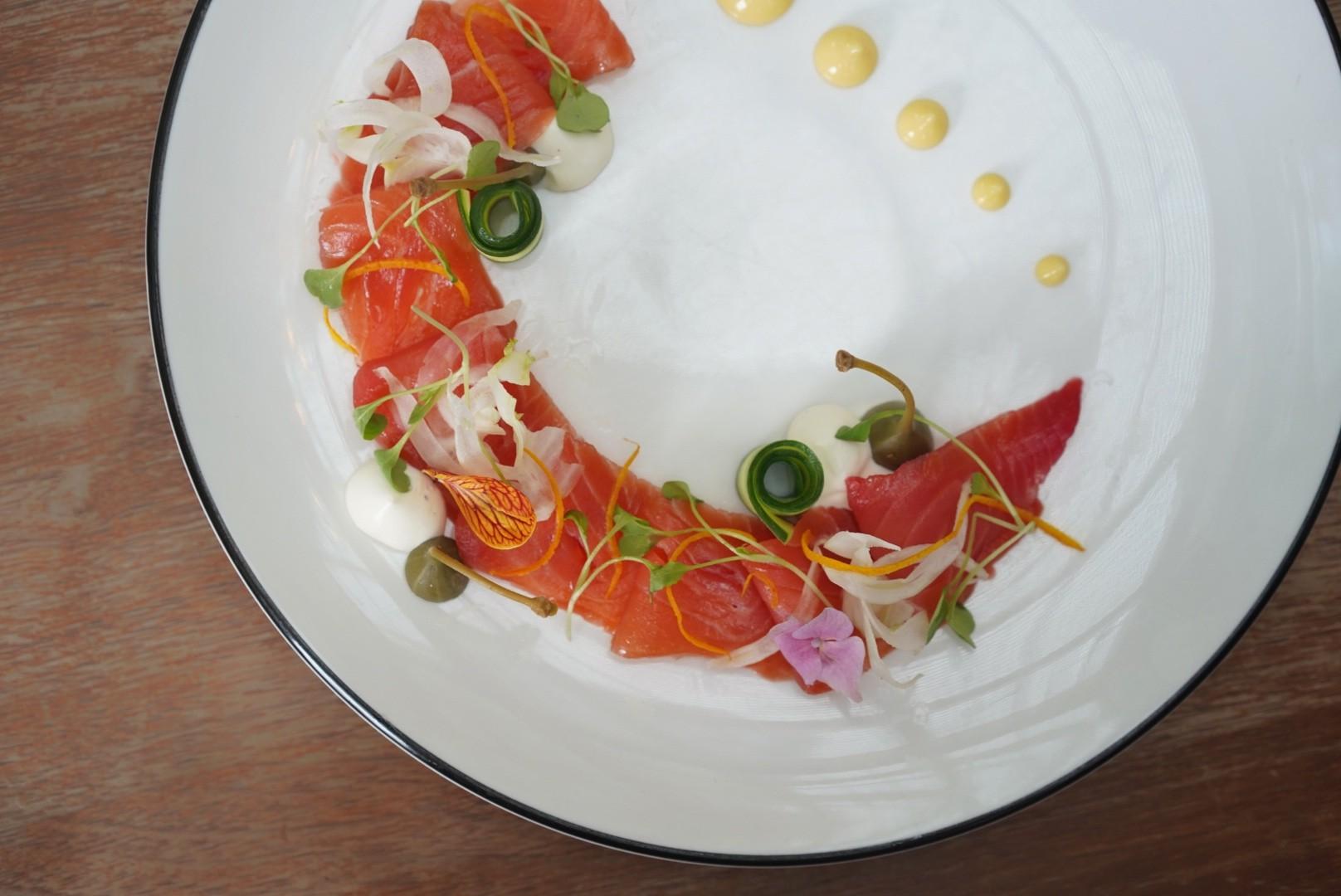 House-cured in beetroot juice overnight, the Danish-imported Beetroot Salmon is presented in whorling pleats, sprinkled with candied orange peel.
