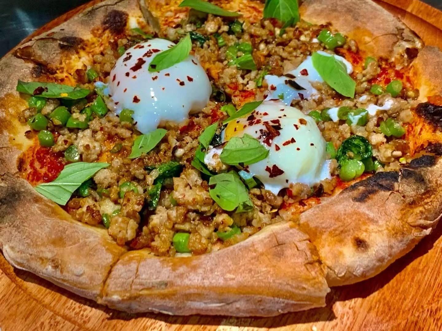 Here, he’s spearheaded a menu of Southeast Asian fusion bites, like pad krapow pizza, 'Asian' scotch eggs, coffee ribs, and garlic jumbo tiger prawns – food that pairs perfectly with the lineup of craft beers on tap.
