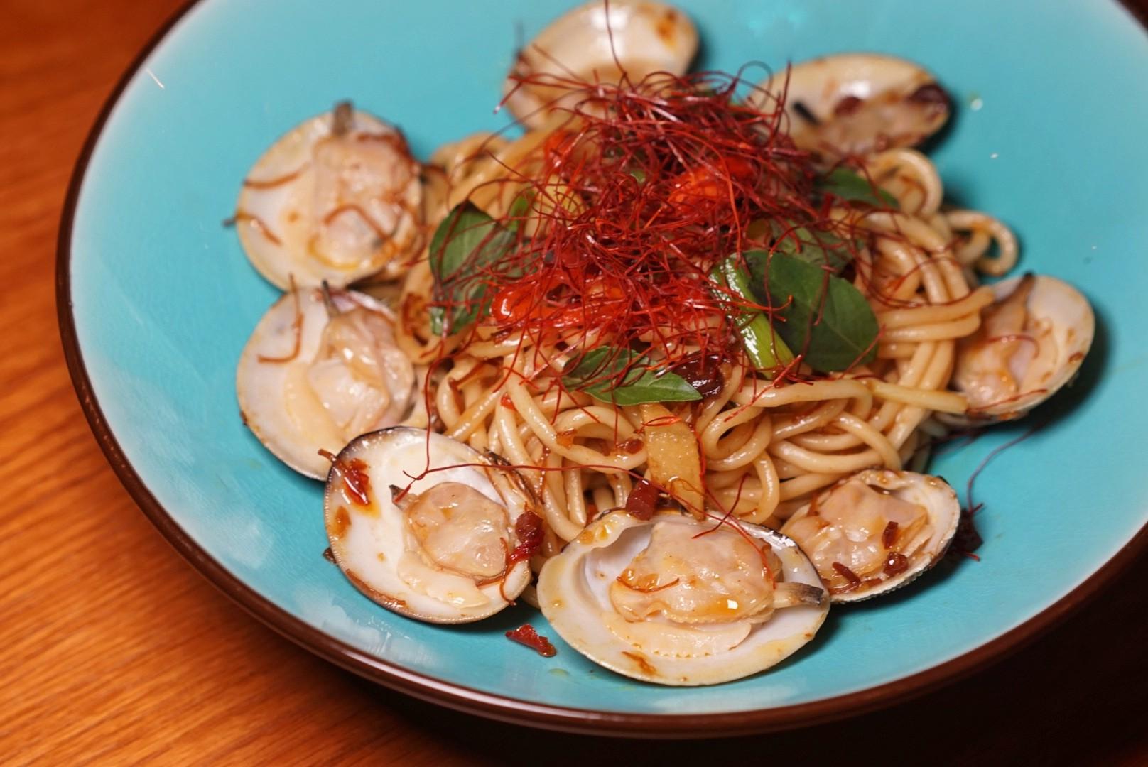 Other carb-centric plates include twisting ropes of Pork and Cabbage Udon (RMB58) as a deconstructed dumpling of sorts; Shanghai Thick Noodles (RMB68) rimmed by Canadian clams; and Grilled Chicken Fried Rice (RMB58), an Indonesian take on this classic street food staple.