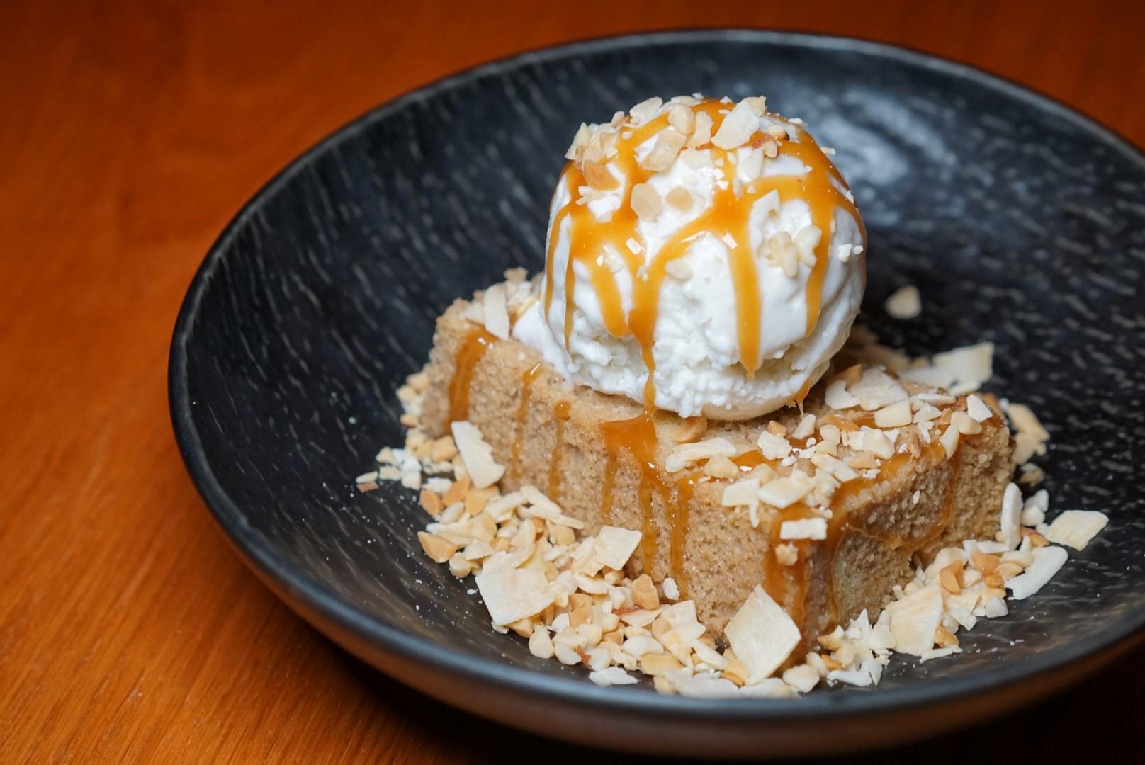 Dense and soaked through with milk tea, the Asian Tres Leches (RMB58) rivals its Mexican counterpart, topped with a scoop of coconut ice cream and crushed peanuts.