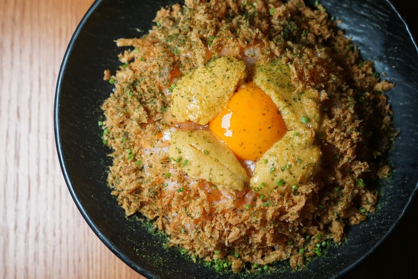 Buttery slabs of imported sea urchin encircle said yolk, along with salmon belly tartare, nori jam and crunchy toasted rice flakes – that are best enjoyed shambolically jumbled together then shoveled in mountainous scoops directly into your face.