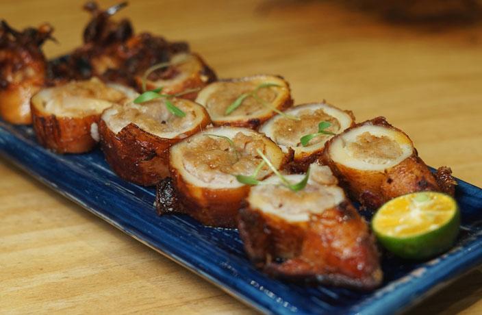 While beautifully charred and elegantly presented, the Stuffed Squid (RMB48) unfortunately falls flat on flavor. The bland ground pork stuffing is crying out for salt, spice, garlic or... anything to tie it together with the grilled squid.