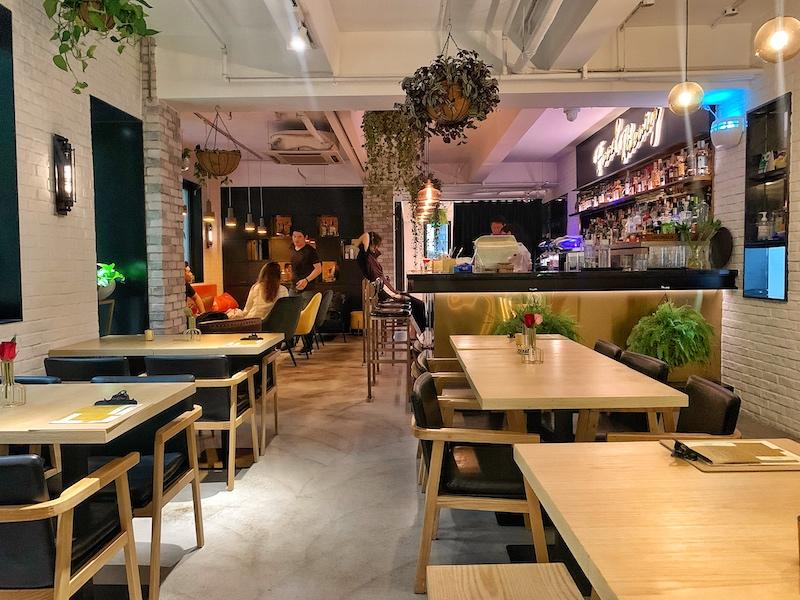 While the space is beautifully decorated, with plants and greenery adding natural pops of color, the modern and sleek kitchen clashes with the cookie-cutter furnishings and weirdly 70s era orange and brown colored couches. Similar to the concept, the décor is somewhat confusing; an amalgamation of styles that usually aren’t put together... for a reason.