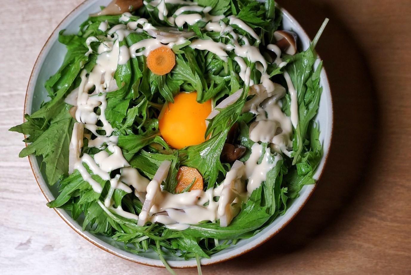 By this point you will need to break up some of the richer menu items, and we suggest the Mizuna Leaves (RMB68), peppery greens coated in a creamy sesame dressing mixed with crunchy pickled lotus roots and savory black mushrooms.
