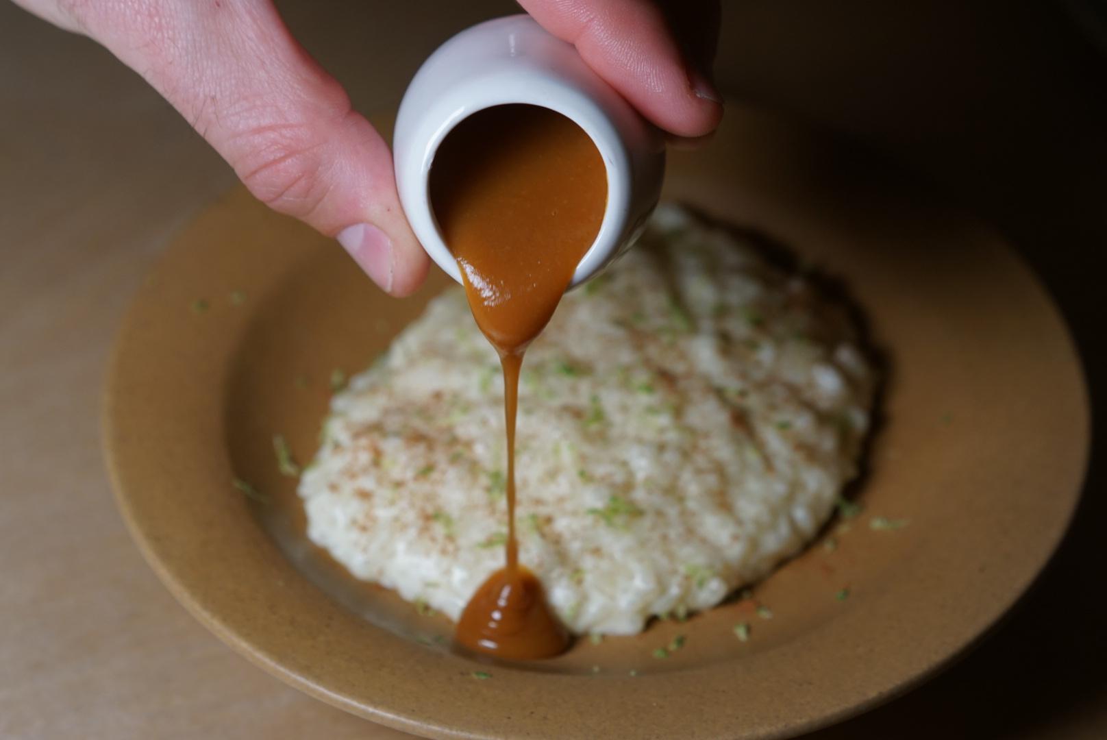 On the other side of the temperature spectrum, the Riz au Lait (RMB65) rice pudding is served warm, yet equally thick and creamy as the panna cotta, with a molten salted butter caramel embodying the perfect balance of burnt dark sugar and warming honey sweetness.