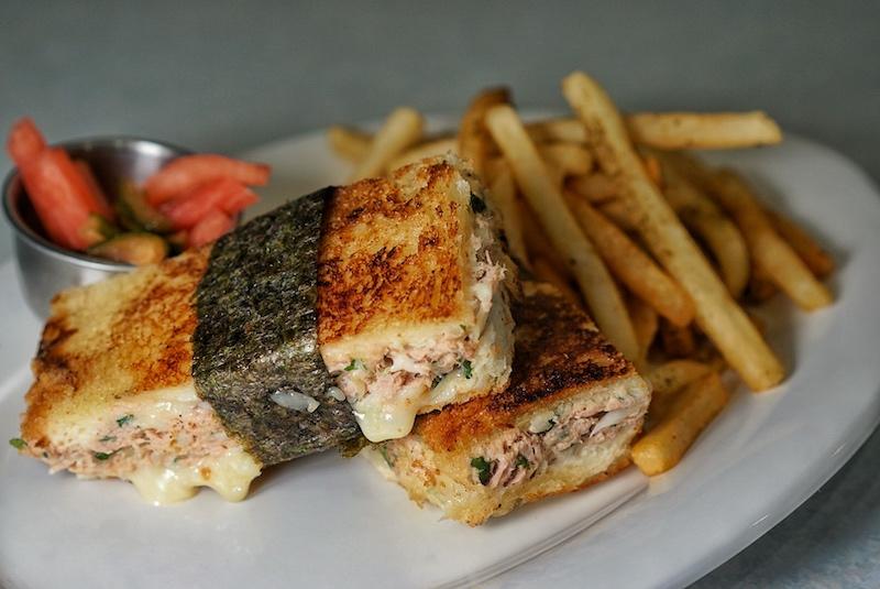 The Tuna Melt (RMB68) is a 10/10 bite of nostalgic joy. The buttery bread is effortlessly light, yet crispy and toasted, stuffed to the brim with creamy tuna salad and pull apart gooey melted white cheddar. Wrapped in a thin layer of seaweed and served alongside furikake seasoned fries and homemade pickles, the nod to Japanese flavors is welcomed without being distracting.