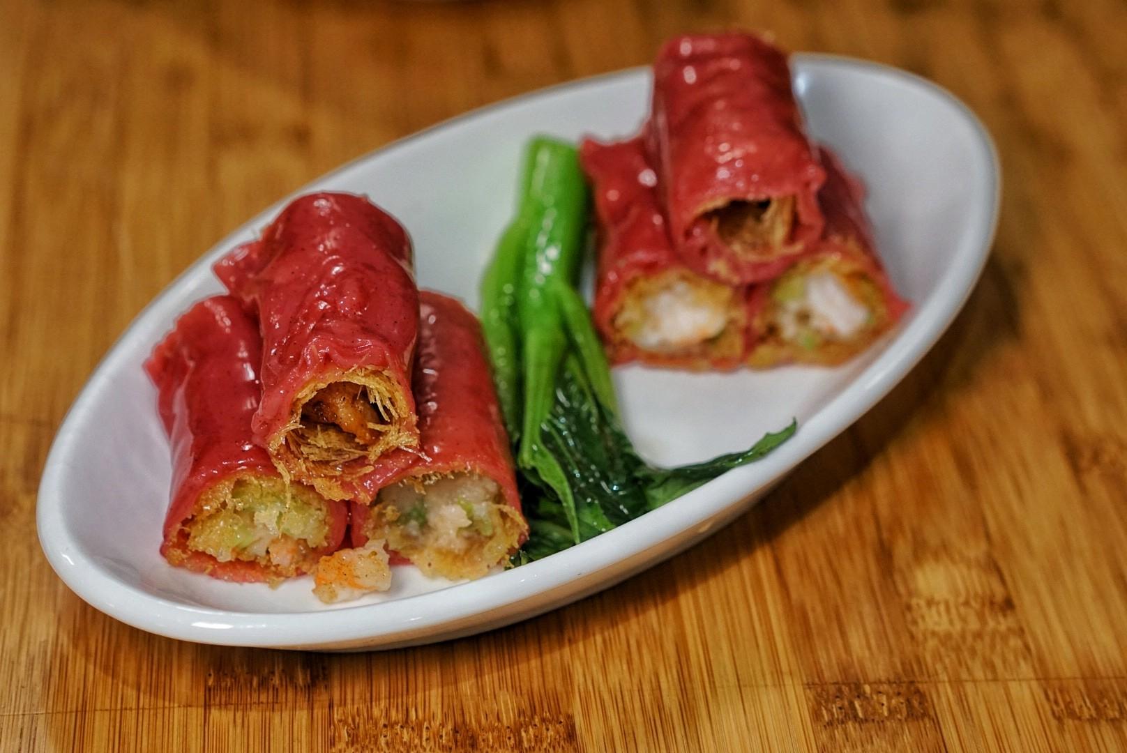 On the dim sum menu, the Steamed Red Rice Roll with Fried Shrimp (RMB35) jumped to the top of our favorite bites list. Covering all the bases in both flavor and texture, the rolls are stuffed with meaty yet crispy shrimp that find a happy medium between zhaliang and the original shrimp rolls.