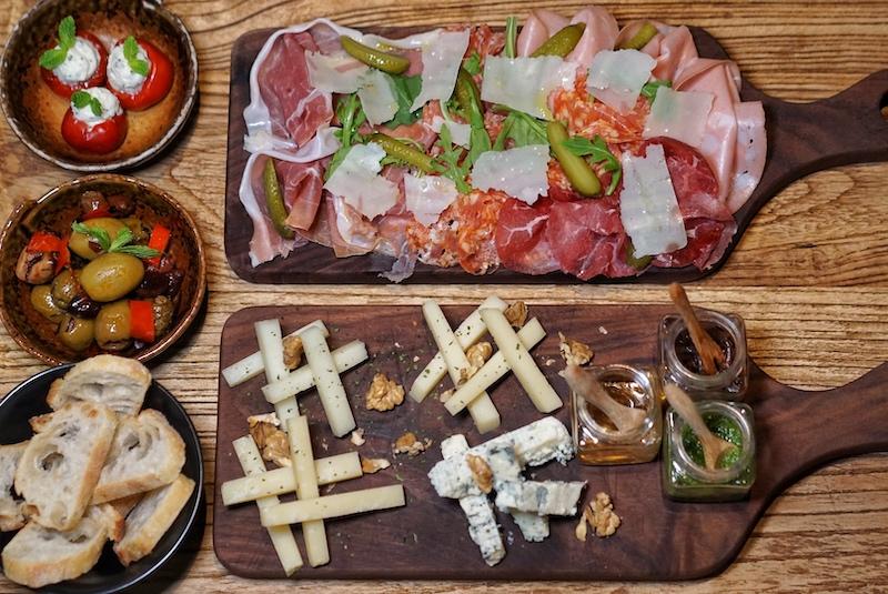 The ultimate after work snack comes in the way of the Antipasto Platter (RMB218) – easily a meal for two or snacks for four. Two large wooden trays are stacked to the brim with a selection of meats (prosciutto, mortadella and salami) as well as a rotating selection of four different cheeses.