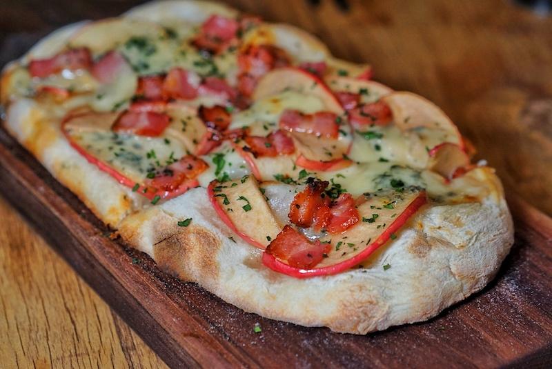 Moving down the menu to the carbs, the Maple Glazed Apple & Blue Cheese Pizza with Bacon (RMB68 for 8-inch, RMB128 for 12-inch) uses Napoli pizza flour for a noteworthy crust compared to others around the city. The crisp and slightly charred outside hugs a pillowy soft, bready inside, making you momentarily forget about the actual toppings. Just momentarily. And then…cheeeeese. All that tangy, funky goodness of blue cheese, mellowed out by sweet, crisp apple slices and bacon. Because bacon makes everything better. Fact of life.