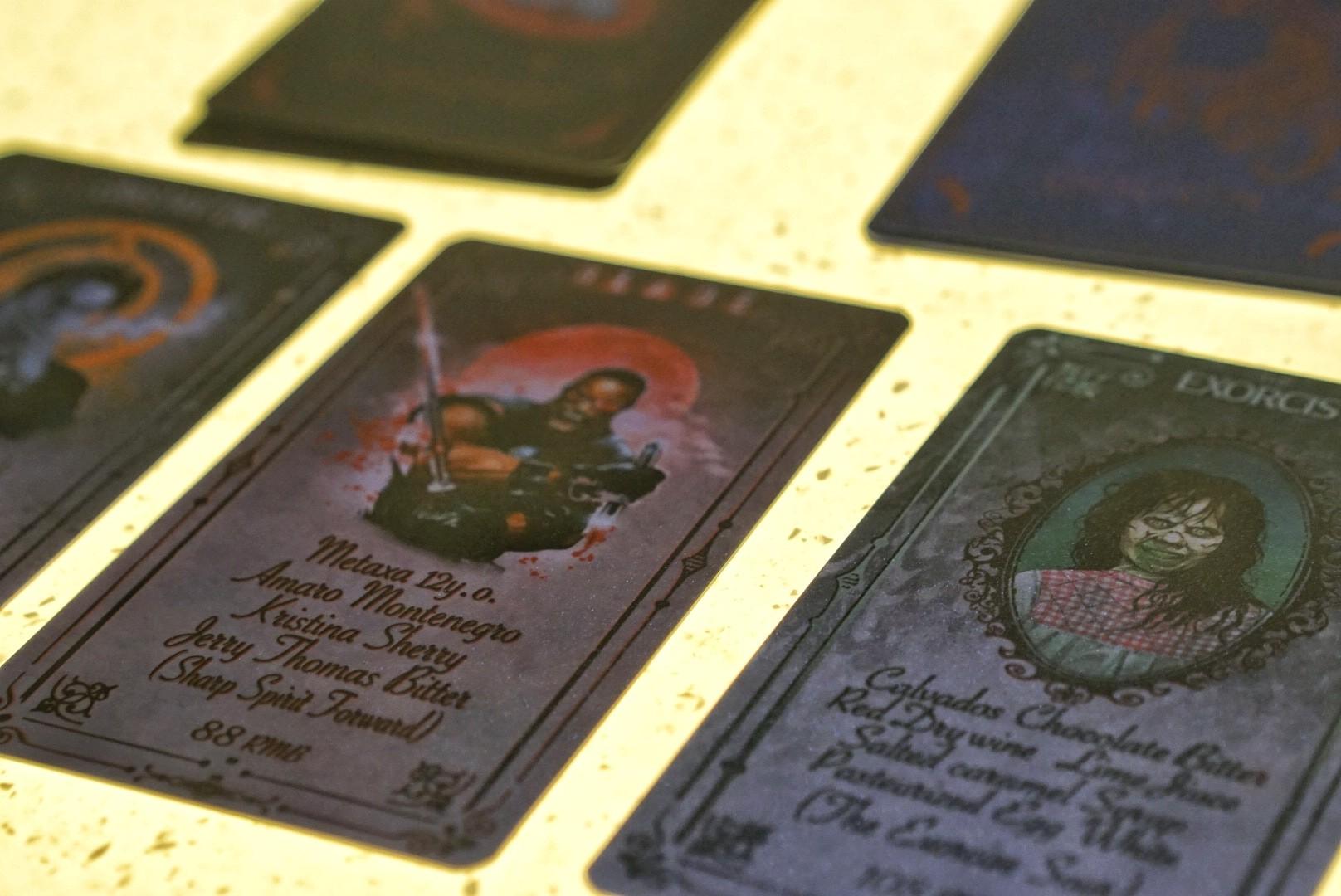 Choose from the tarot card looking piles that span four archetype movie characters – vampire, psychopath, priest or queen. Once you’ve made your selection, reveal the cards that fall into that category to pick a corresponding tipple.