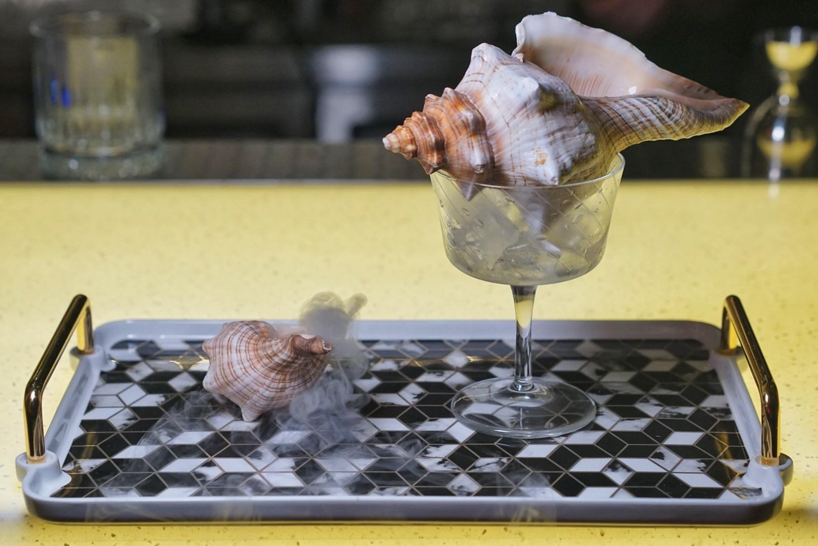 Served in a conch shell, the Jack Sparrow (RMB98) is an oceanic play on a martini with seaweed-infused gin, olive bitters and sea salt, a briny sip straight from the depths of Davy Jones’ locker.