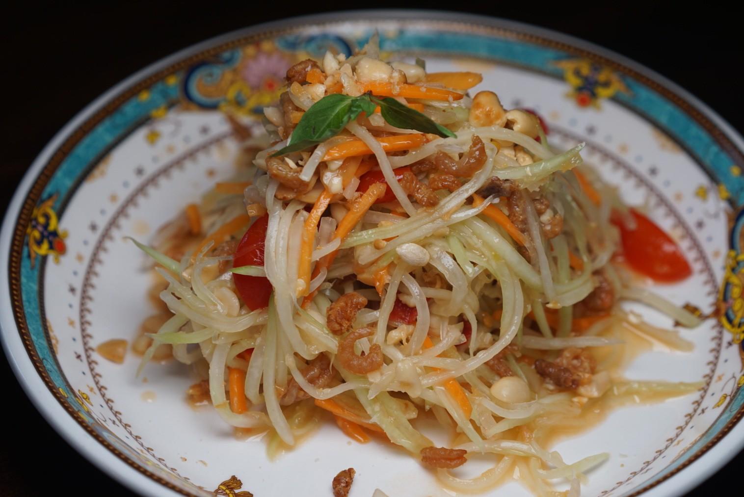 Heavy on the fish sauce in the best of ways, the Green Papaya Salad (RMB38) is the closest rendition of this dish outside of Bangkok we’ve found lately. Pulsing with equal parts chili heat and pungent dried shrimp, the fresh shreds of young papaya and carrot are studded with crushed peanuts, herbs and cherry tomato halves. We’ll take two please.