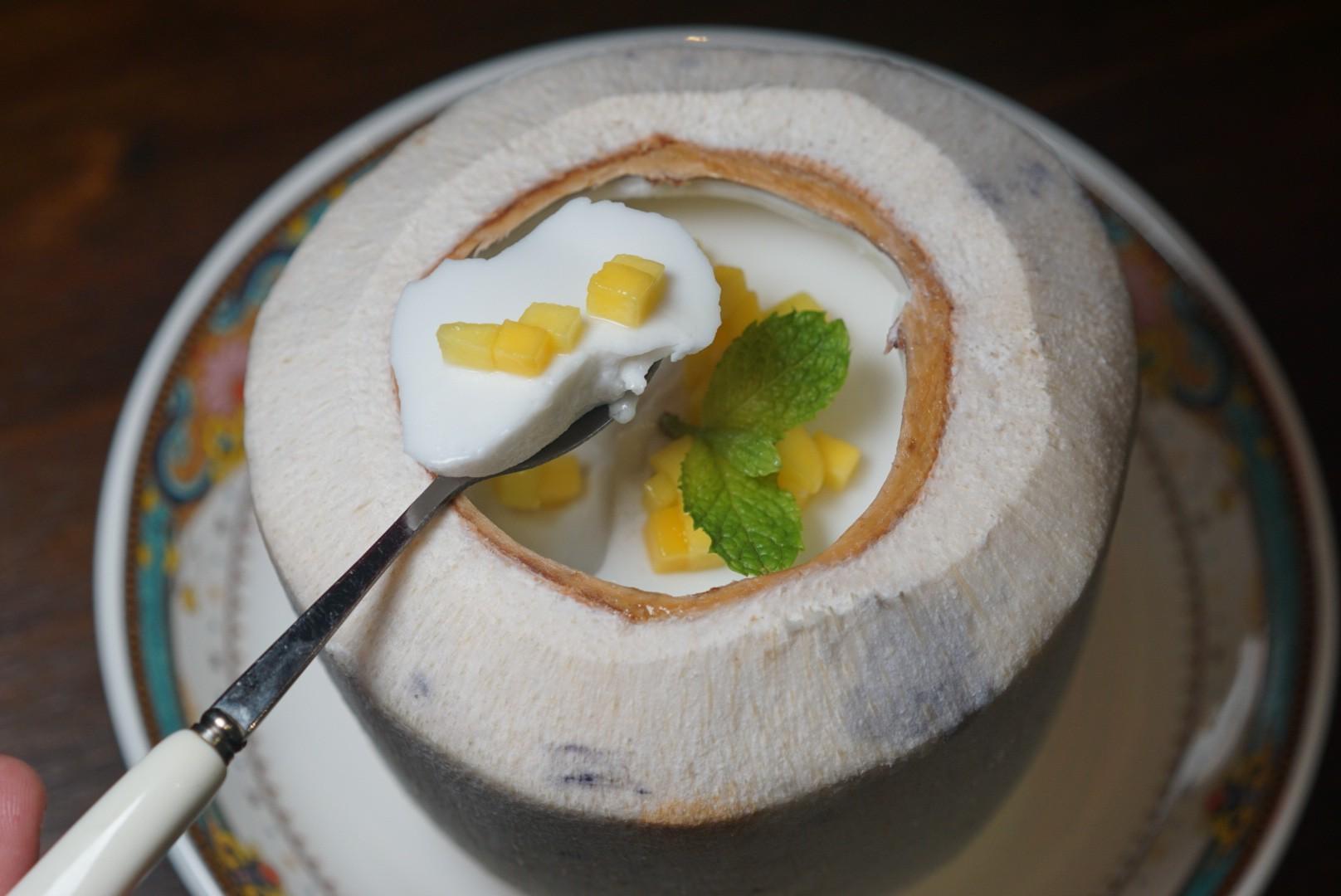 While Mango Sticky Rice (RMB58) is always a surefire go-to, the real standout is the Coconut Pudding (RMB58) – a hollowed out coconut filled with cold, luscious coconut custard. The walls of the coconut are still lined with the fruit’s meat, so the alternating crunch and slippery pudding make for the ideal textural contrast. Thoughtful yet simple, this dessert is what a Thai vacation is all about.