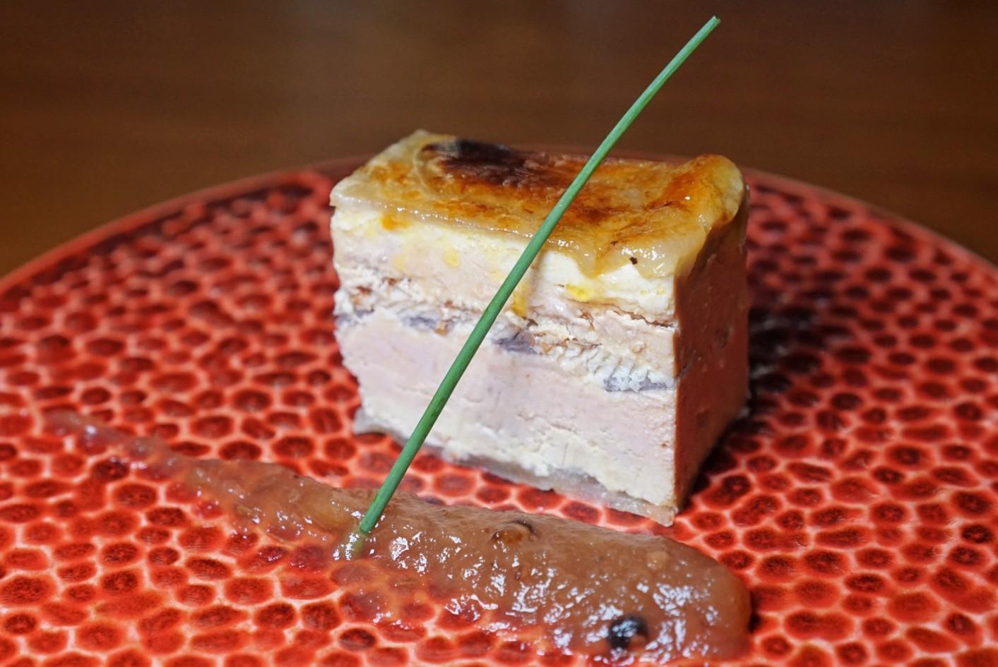 Foie Gras Terrine (RMB108) is layered with a fatty slab of eel in the middle, flanked by two sheets of bruléed apple that shatter into crispy shards when pierced with a fork. A black-pepper flecked green apple jam adds acidity and a gasp of spice.