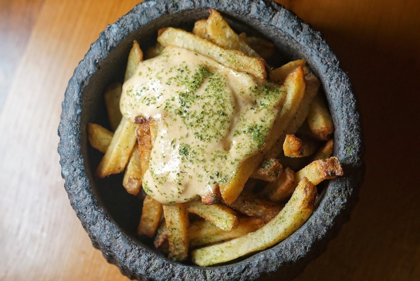 If it’s an extra hit of carbs you crave, you can’t go wrong with the black garlic miso mayo smothered Fries (RMB28).