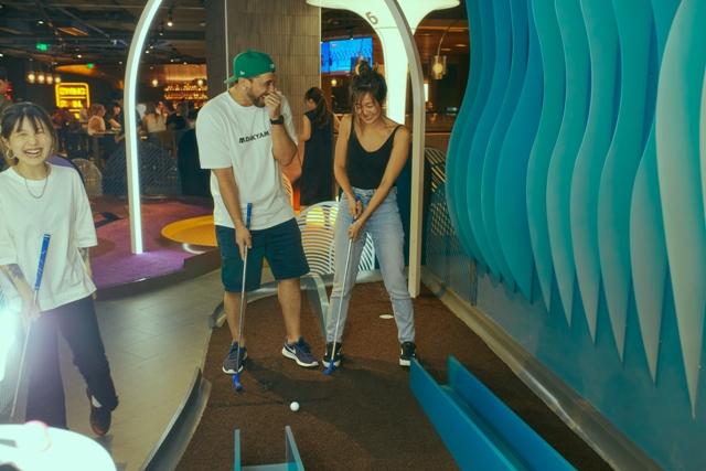 The entertainment-centric space features mini golf, seven swing suites (five of which are private) loaded with more than 80 golf courses around the world, as well as other interactive sports games.